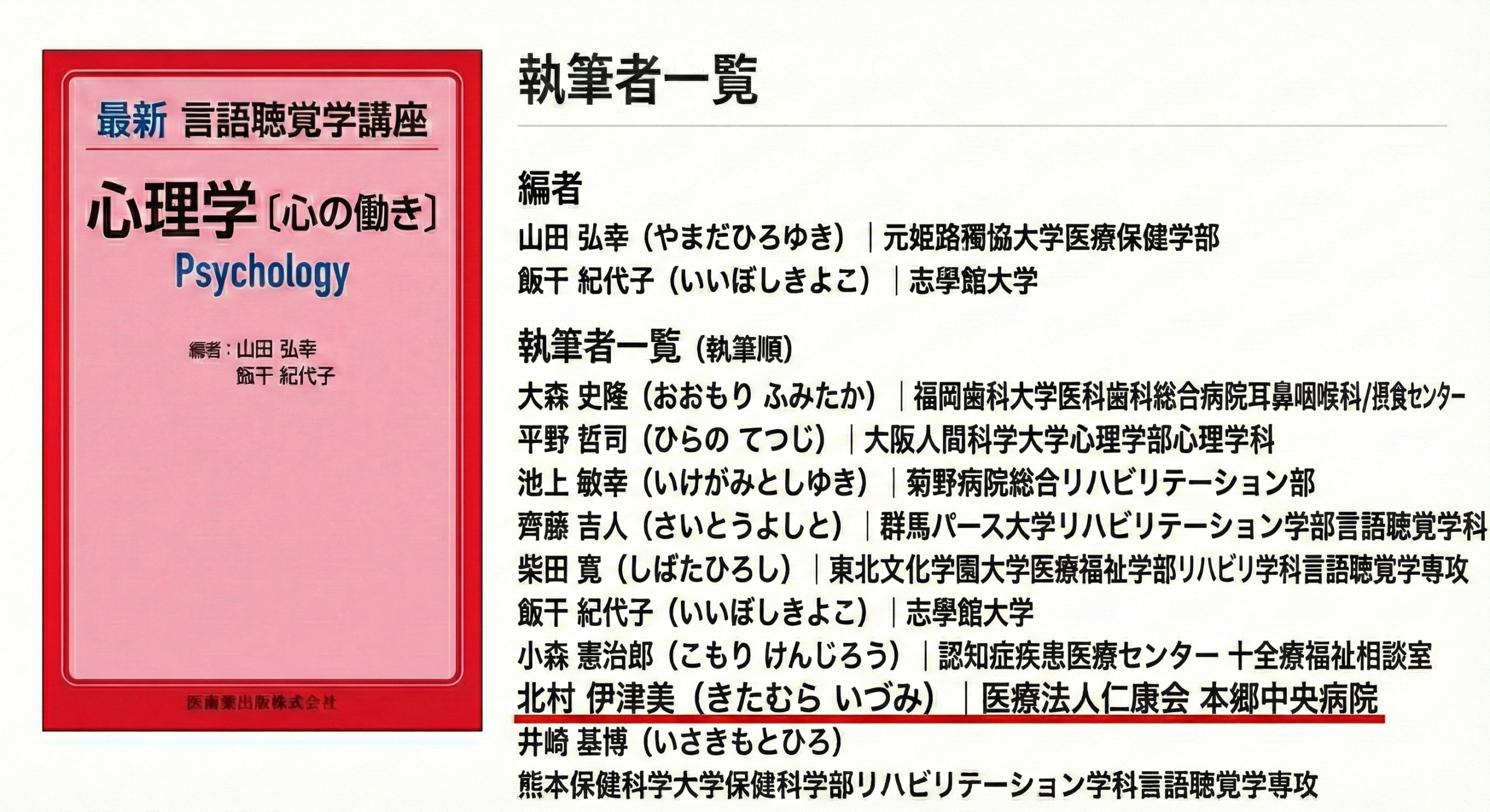 当院の言語聴覚士・伊集院(北村) 伊津美が執筆に参加した書籍『心理学 [心の働き]』が出版されました。